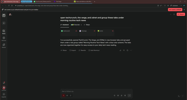 Traditional AI chatbots require separate apps or websites for research tasks. Comet browser research tools integrate this functionality directly into browsing: